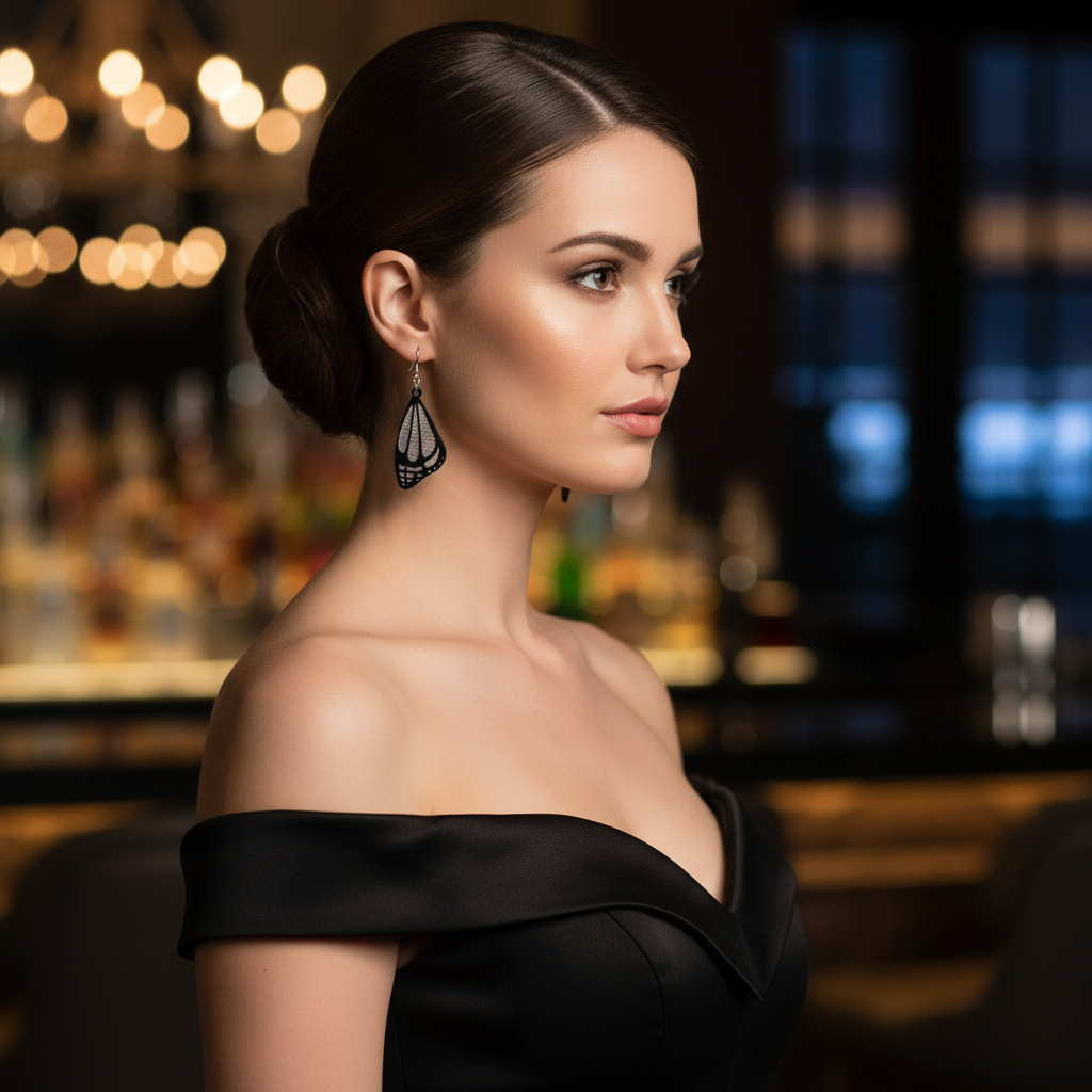 "Add a touch of elegance and whimsy to your style with our Fretmade Butterfly Wing Earrings! Available in gold or silver, these earrings feature delicate butterfly wings crafted from black acrylic. Enhance your outfit with these unique and eye-catching earrings. Perfect for special occasions or everyday wear!"