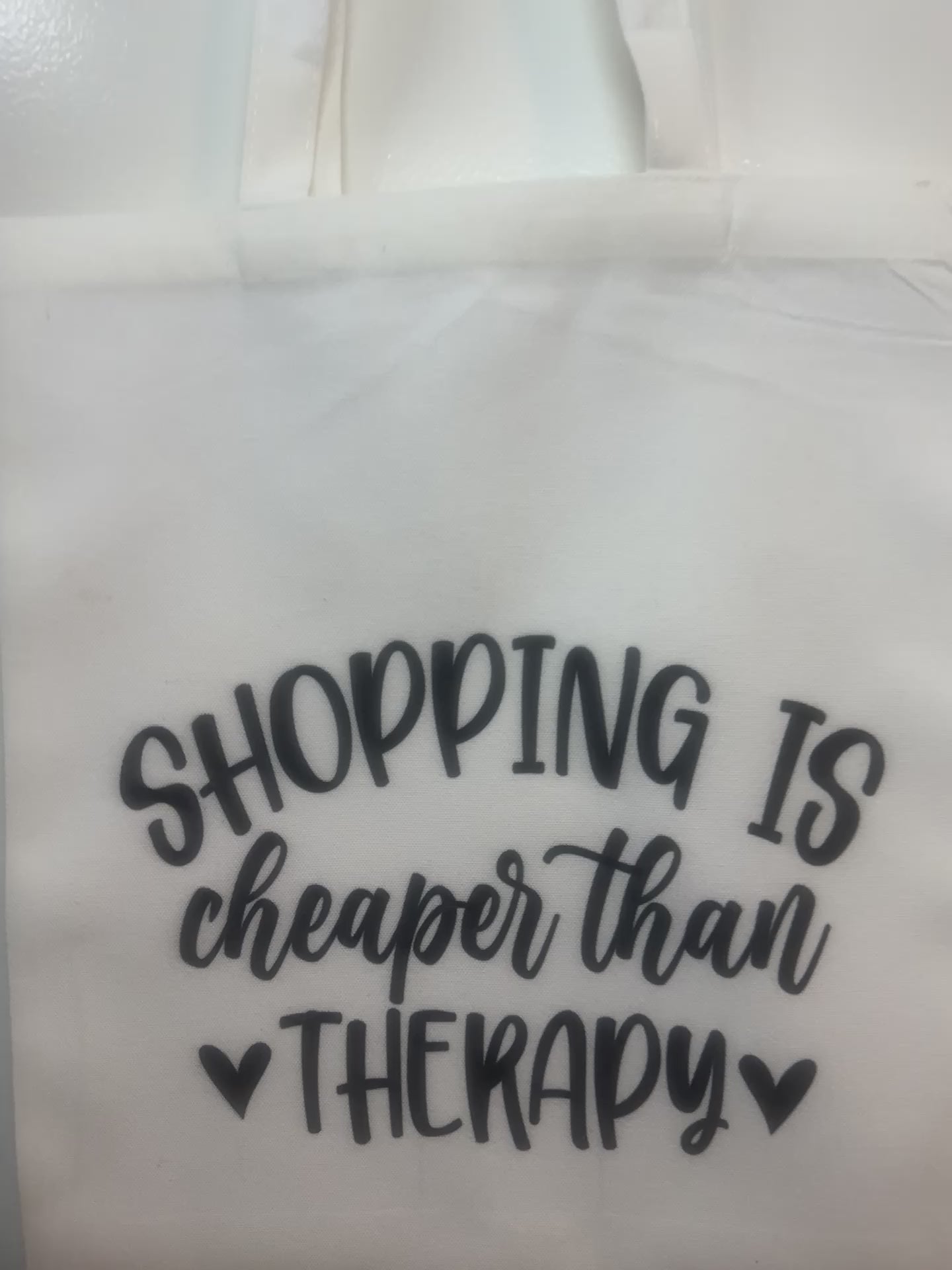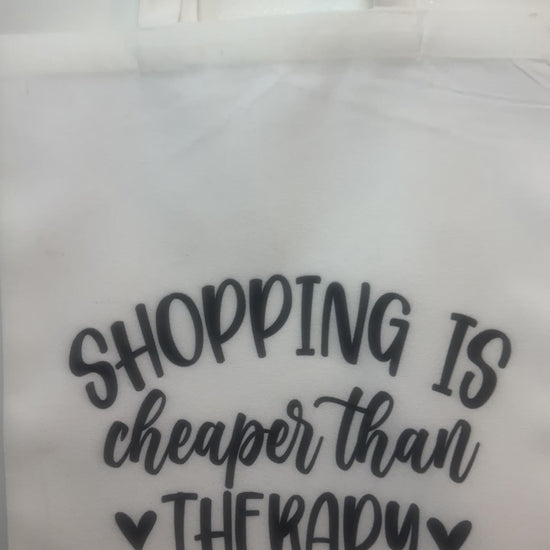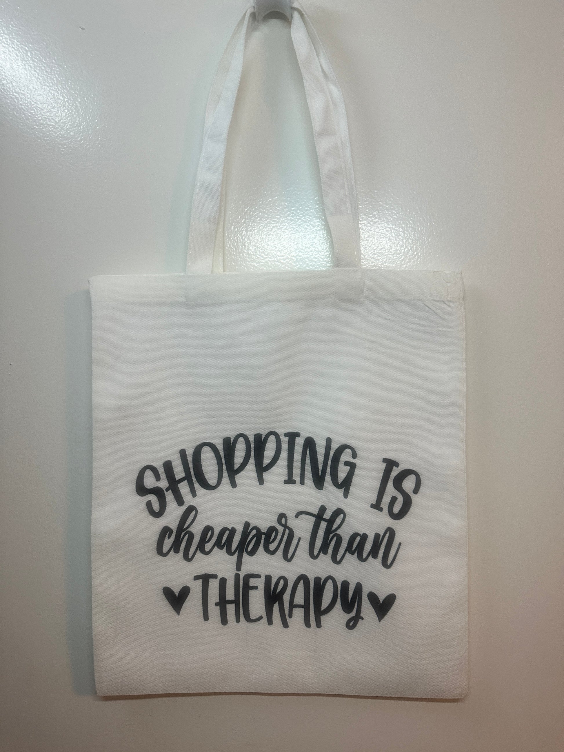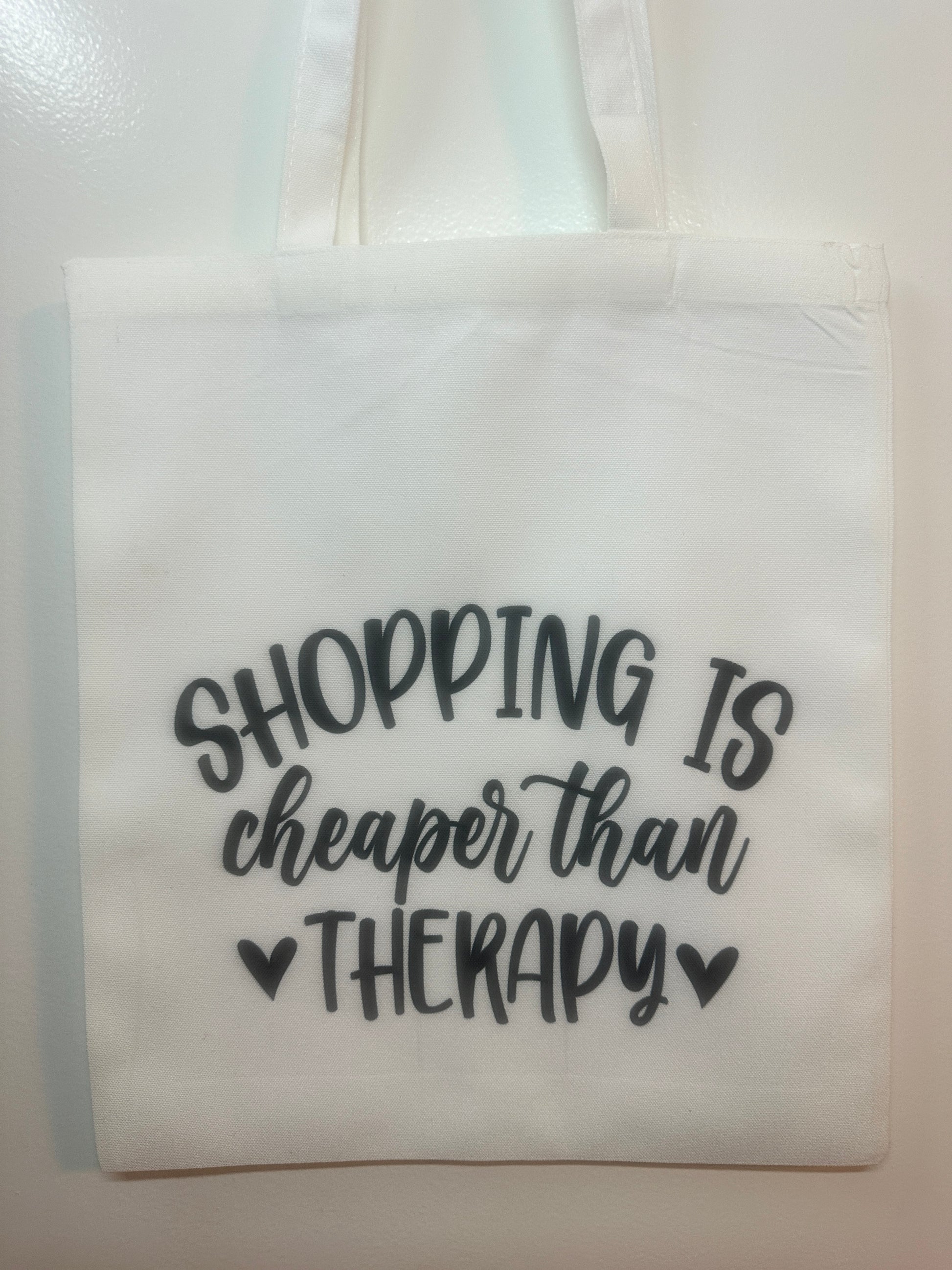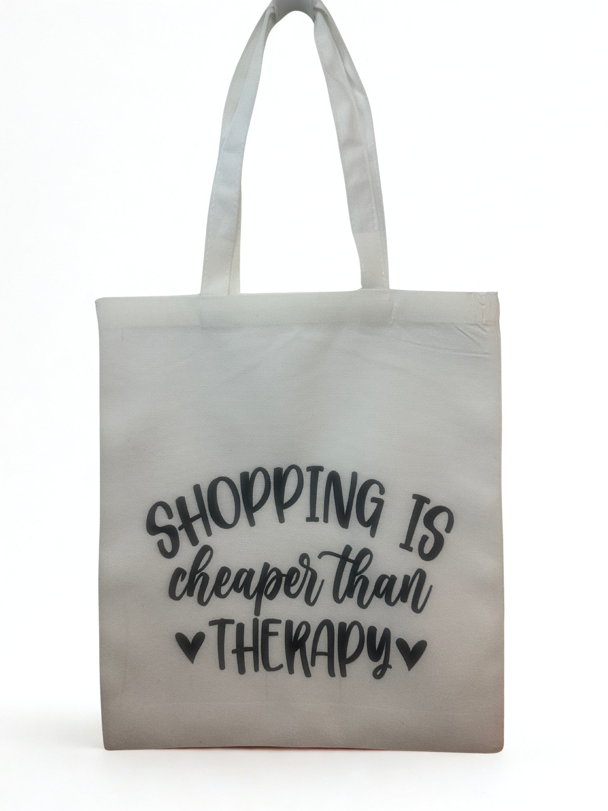 Fretmade Tote Bag “Shopping Is Cheaper Than Therapy”