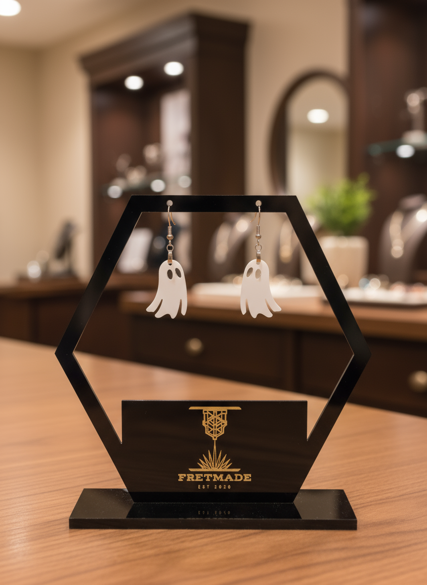 Get In The Halloween Spirt With A Spooky Ghost Acrylic Earrings.